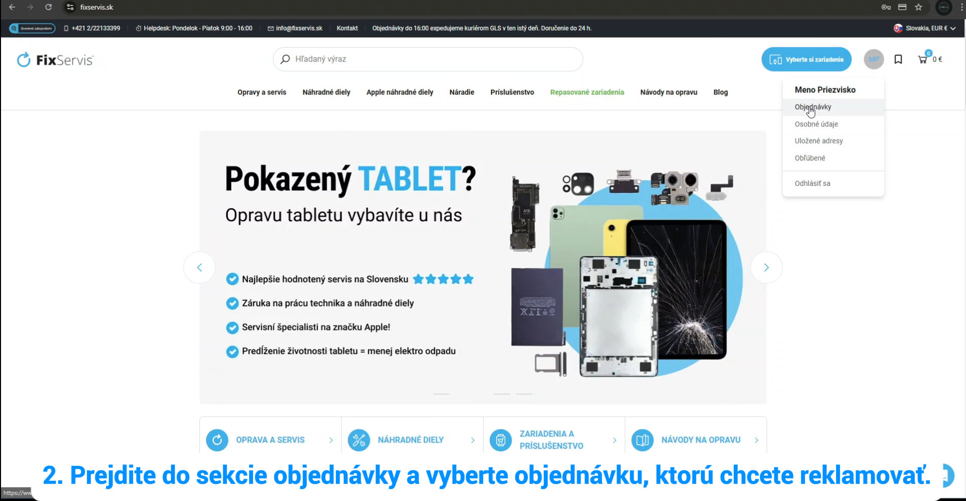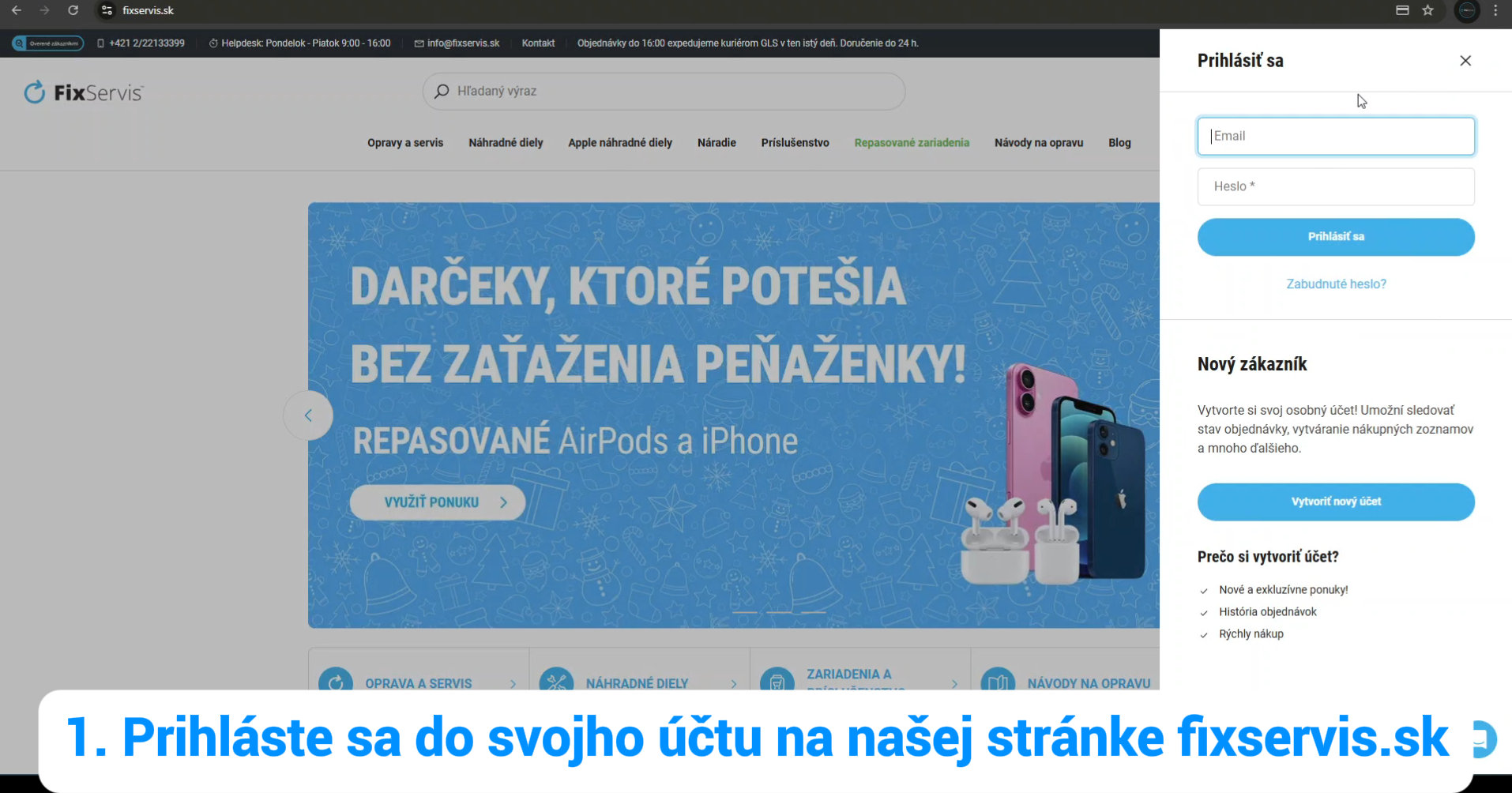 1. Prihláste sa do svojho účtu na našej stránke fixservis.sk.