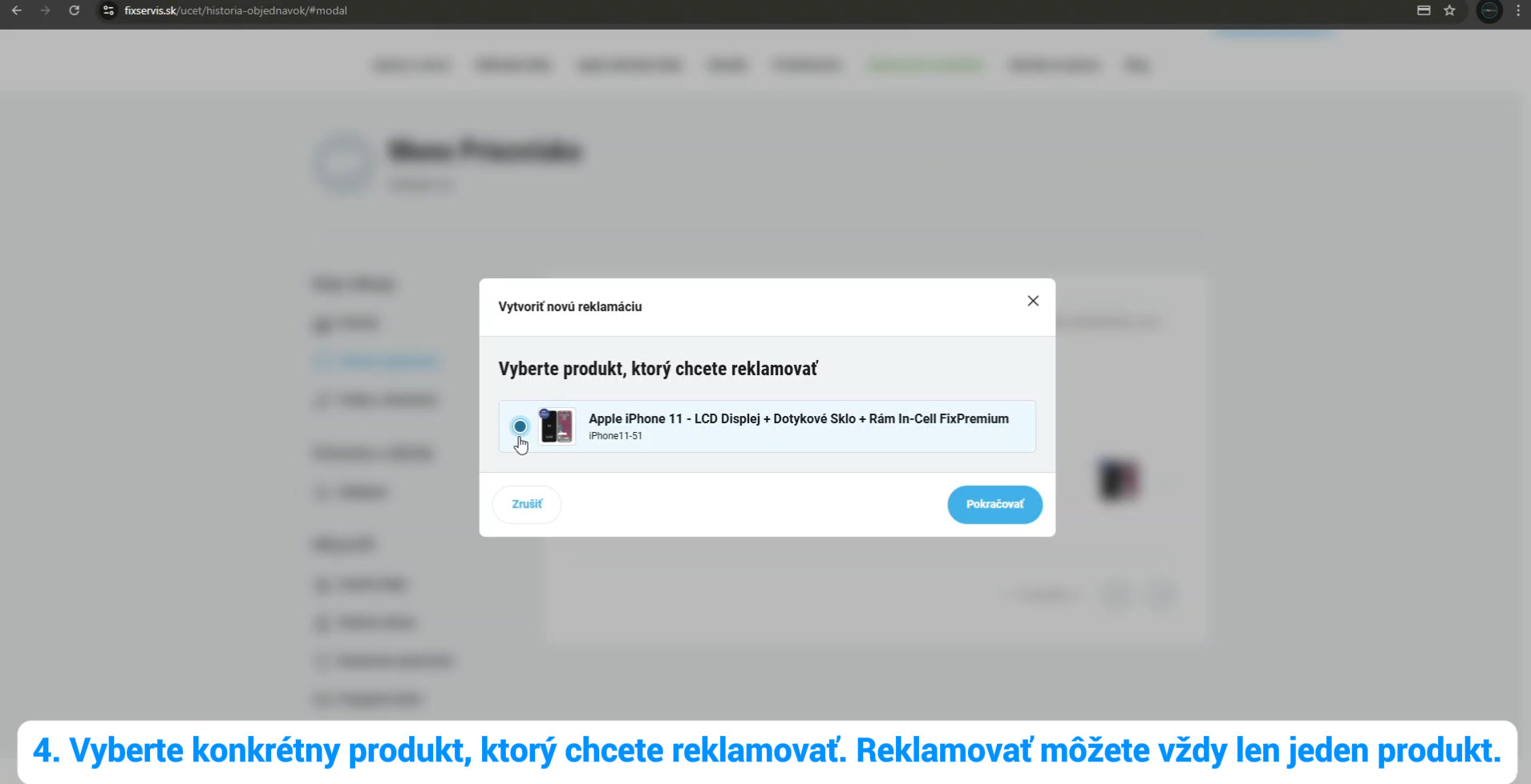 4. Vyberte konkrétny produkt, ktorý chcete reklamovať. Reklamovať môžete vždy len jeden produkt naraz.
