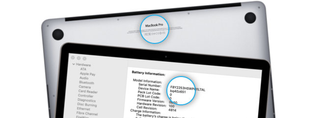 Váš Mac poskytuje niekoľko nástrojov, ktoré vám pomôžu identifikovať ho. Pomocou sériového čísla, čísla modelu, identifikátora modelu (ID modelu) a čísla EMC zistíte, ktorý model MacBooku Air/MacBook Pro máte.